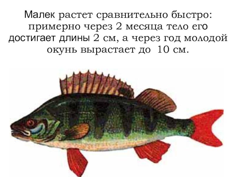 длины 2 см, а через год молодой окунь вырастает до 10 см.