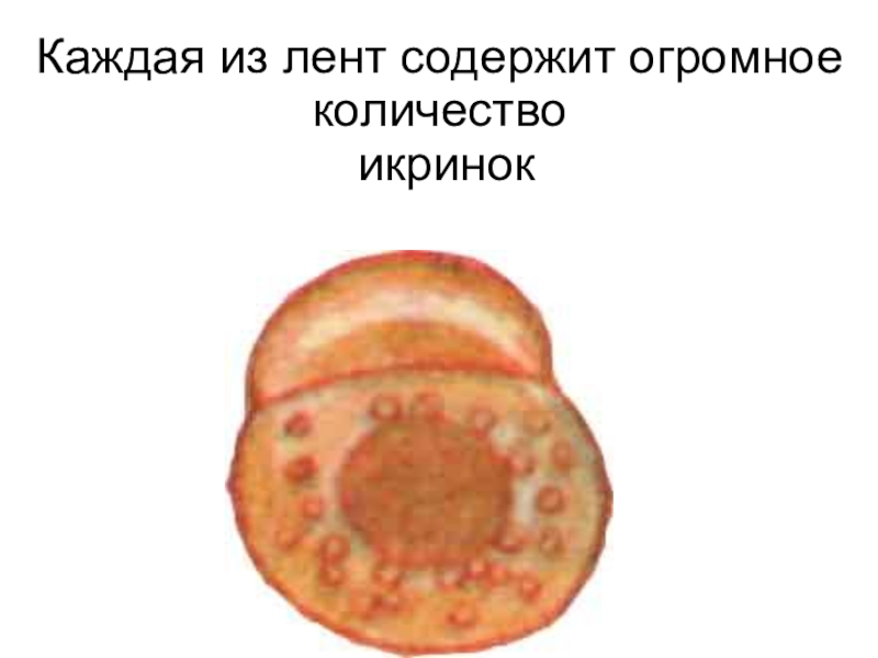 Слайд 30Каждая из лент содержит огромное количество икринок