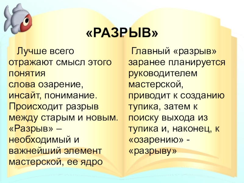 «РАЗРЫВ»  Лучше всего отражают смысл этого понятия слова озарение, инсайт, понимание. Происходит разрыв между старым и новым.