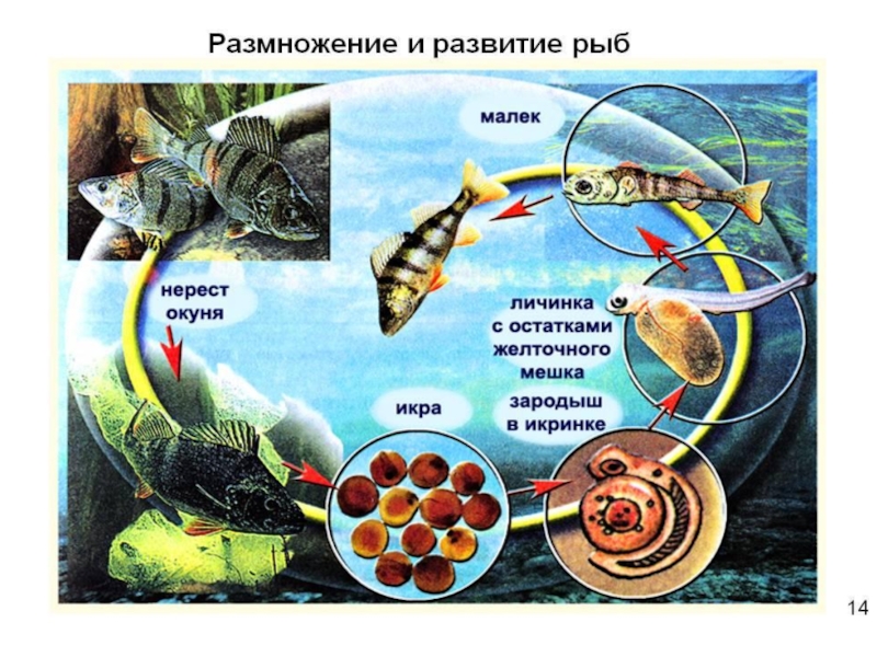 Слайд 14РАЗМНОЖЕНИЕ И РАЗВИТИЕ РЫБ