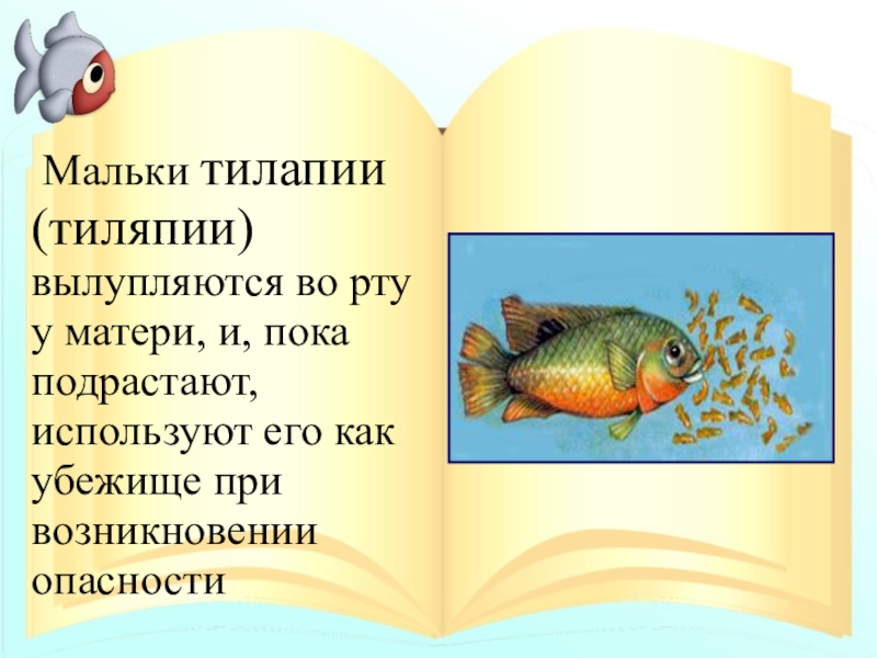 Мальки тилапии (тиляпии)  вылупляются во рту у матери, и, пока подрастают, используют его как убежище