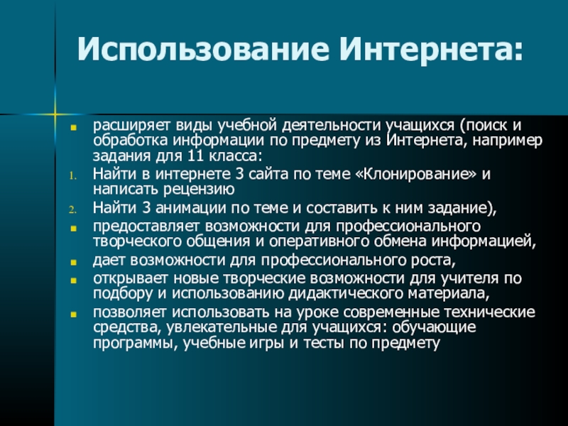 расширяет виды учебной деятельности учащихся (поиск и обработка информации по