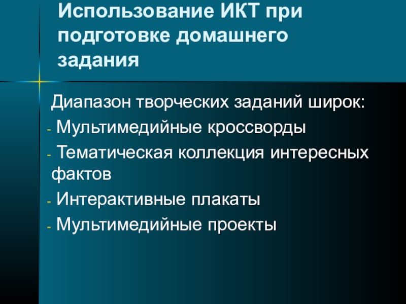 Слайд 26Использование ИКТ при подготовке домашнего задания