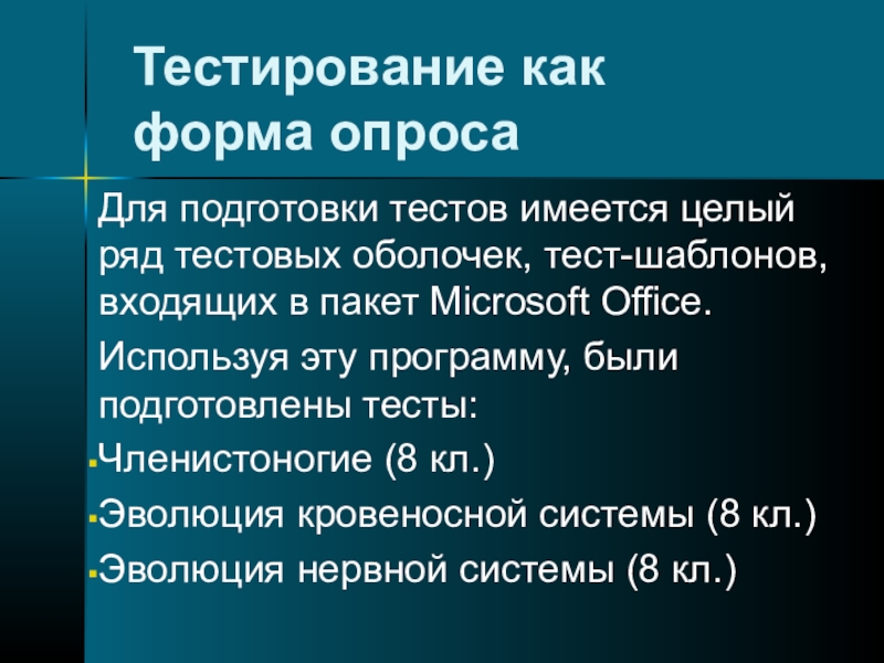 Слайд 25Тестирование как форма опроса