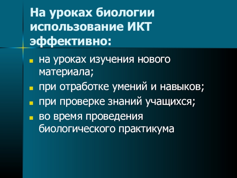 Слайд 11На уроках биологии использование ИКТ эффективно: