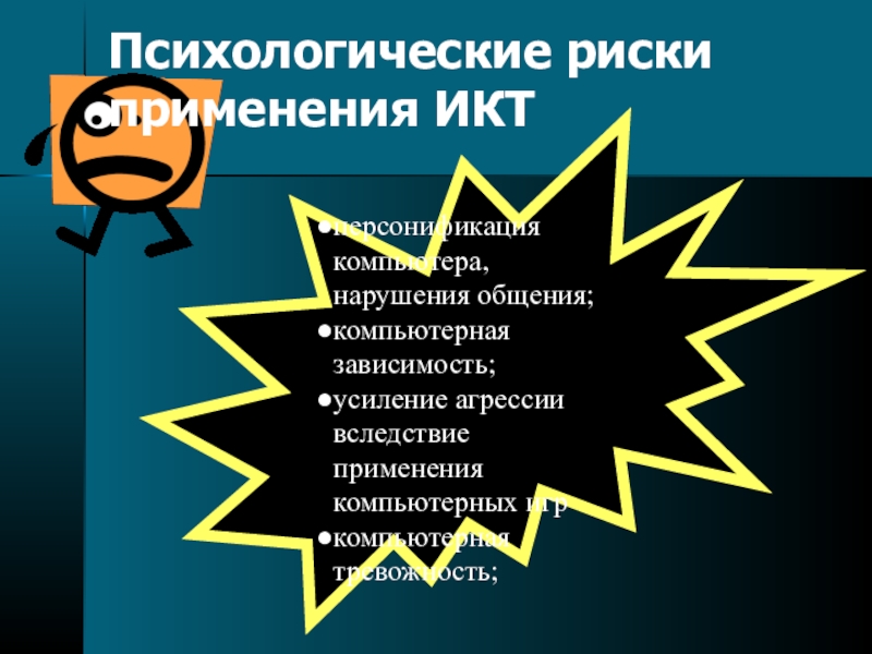 Слайд 30Психологические риски применения ИКТ