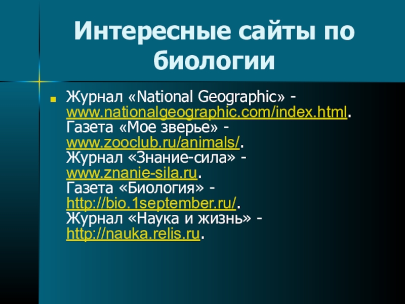 Слайд 24Интересные сайты по биологии