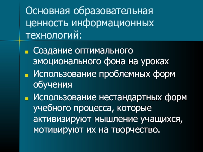 Слайд 7Основная образовательная ценность информационных технологий: