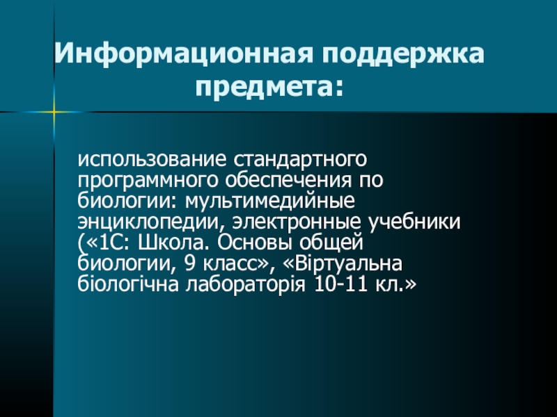 учебники («1С: Школа. Основы общей биологии, 9 класс», «Віртуальна біологічна лабораторія 10-11 кл.»