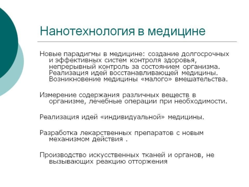 Презентация, доклад на тему Использование нанотехнологий в медицине