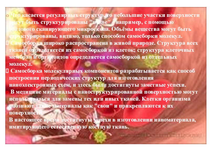 Слайд 4 Что касается регулярных структур, то небольшие участки поверхности могут быть