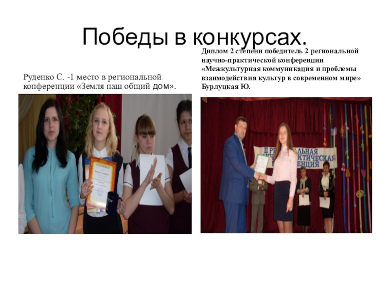 Диплом 2 степени победитель 2 региональной научно-практической конференции «Межкультурная коммуникация и проблемы взаимодействия культур в современном мире» Бурлуцкая Ю.