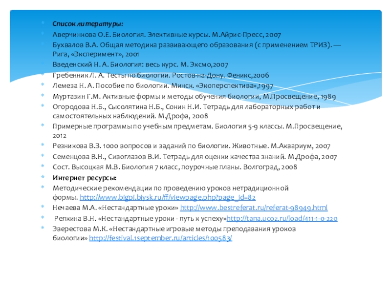 Эверестова М.К. «Нестандартные игровые методы преподавания уроков биологии» http://festival.1september.ru/articles/100583/
