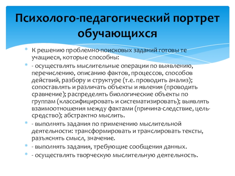 Слайд 5К решению проблемно-поисковых заданий готовы те учащиеся, которые способны:
