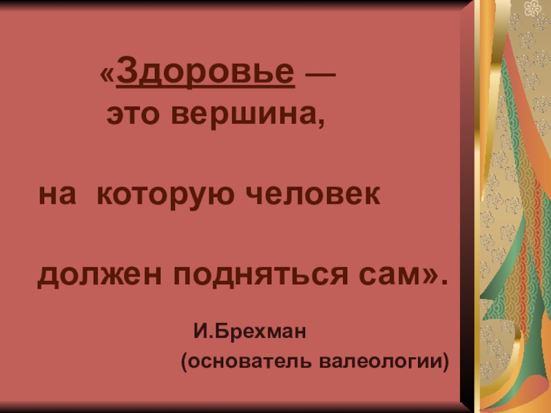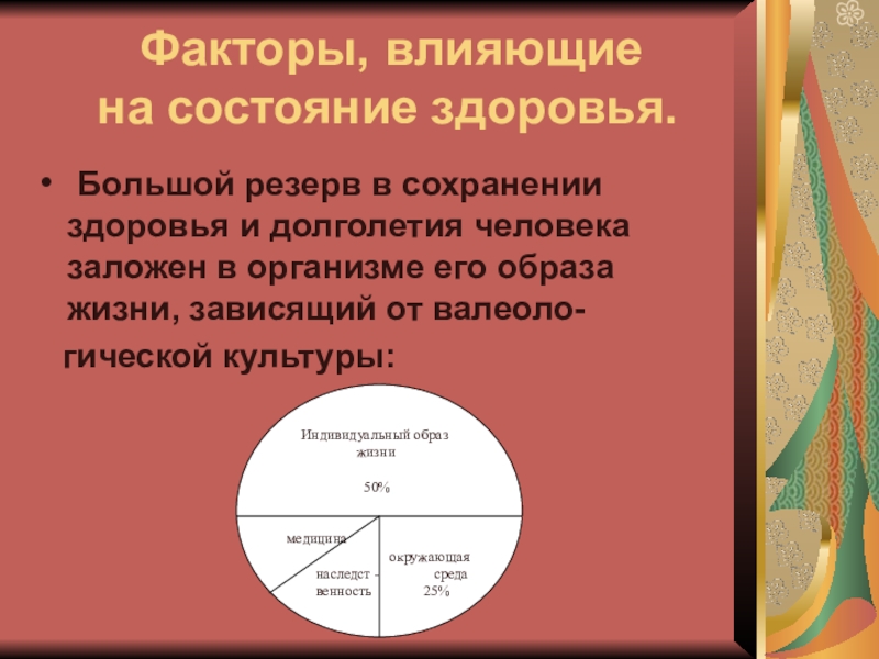 Большой резерв в сохранении здоровья и долголетия человека заложен в организме его образа жизни, зависящий от валеоло-