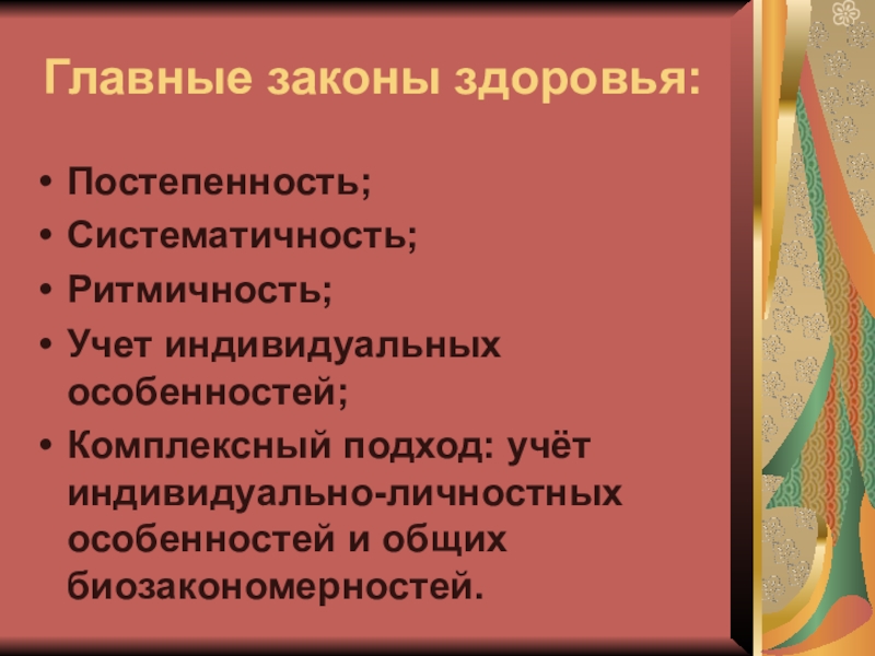 Существуют необходимые человеку составляющие в целом культуру здоровья: