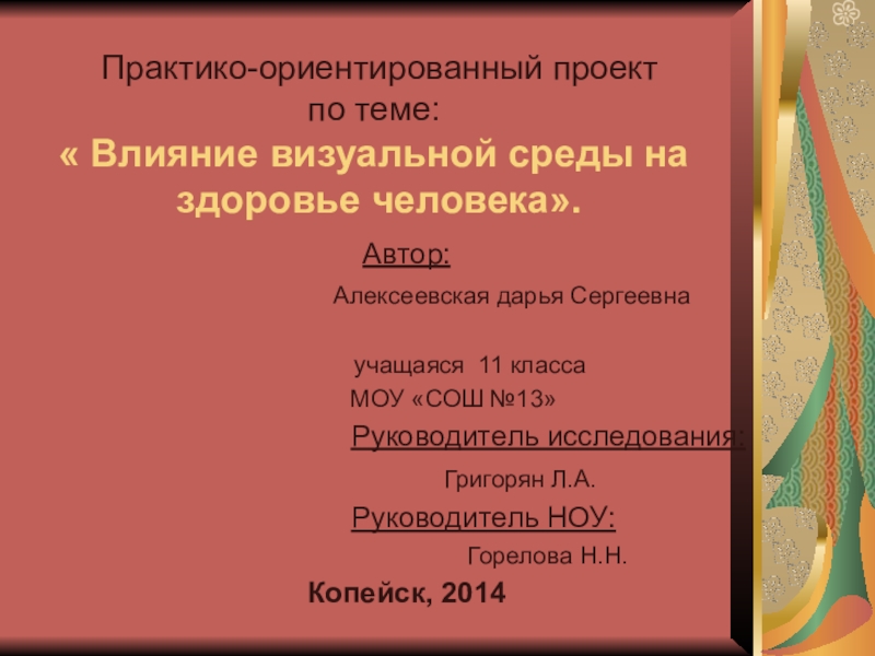 Неблагоприятная визуаль-ная среда школьных каби-нетов является одним из основных факторов нару-шения зрения и диском-фортности психического состояния учащихся.