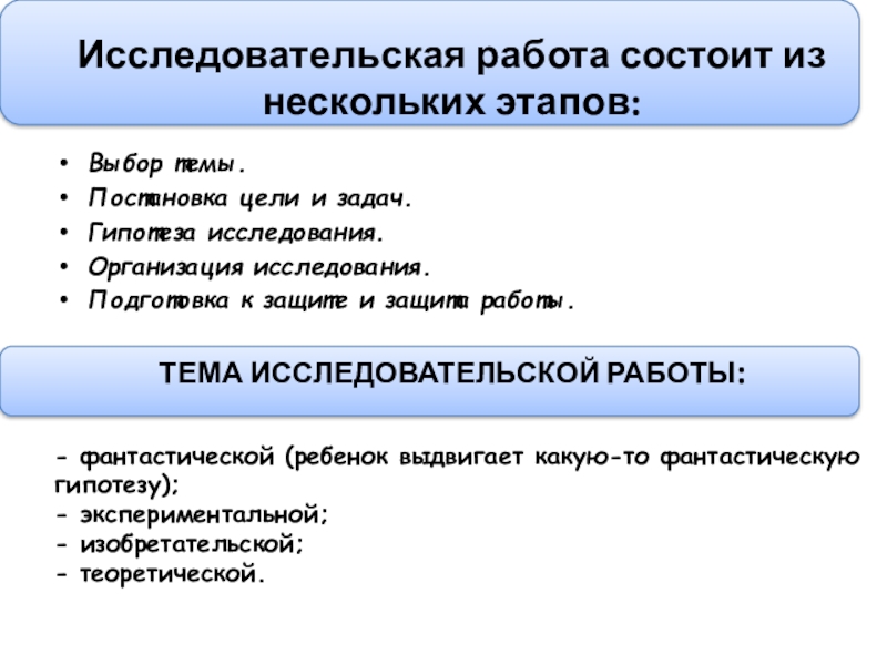 Исследовательская работа состоит из нескольких этапов: