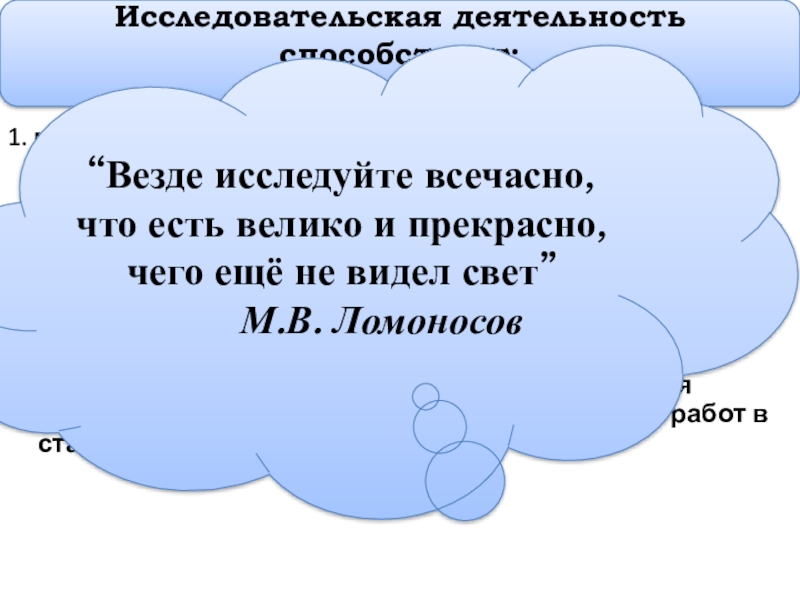 Исследовательская деятельность способствует: