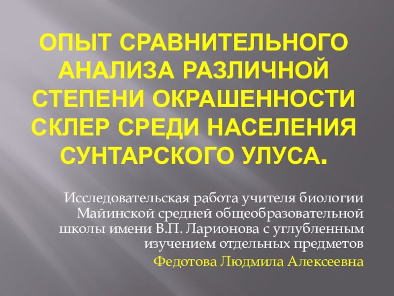 работа учителя биологии Майинской средней общеобразовательной школы имени В.П. Ларионова с углубленным изучением отдельных предметов