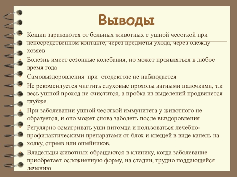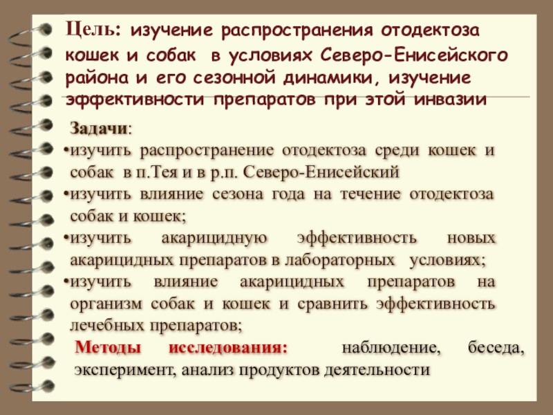 изучить влияние сезона года на течение отодектоза собак и кошек;