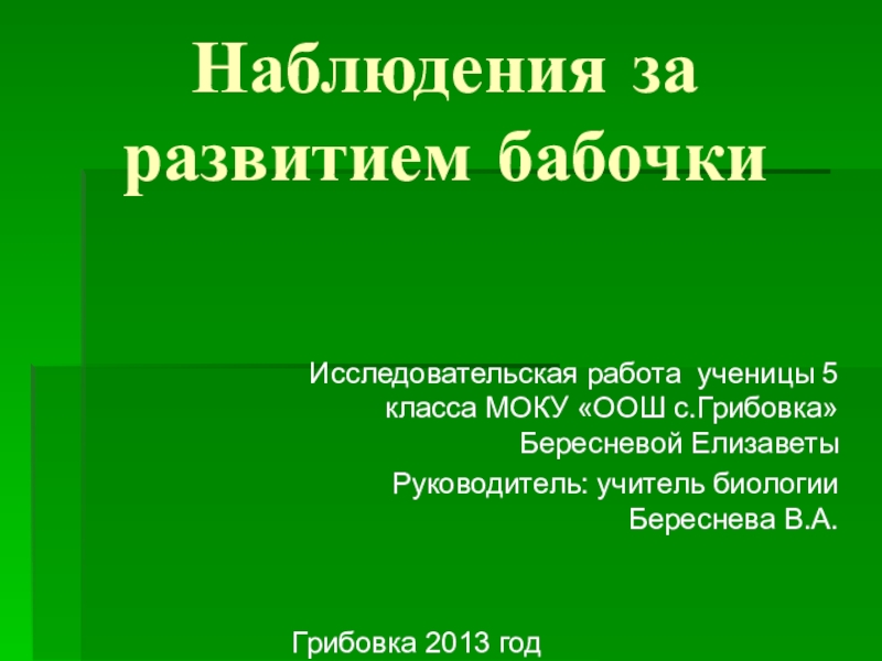 Руководитель: учитель биологии Береснева В.А.