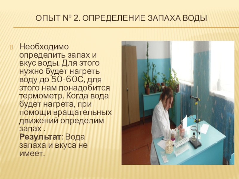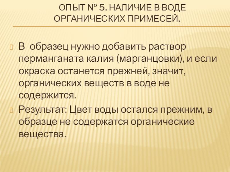 Слайд 26 Опыт № 5. Наличие в воде органических