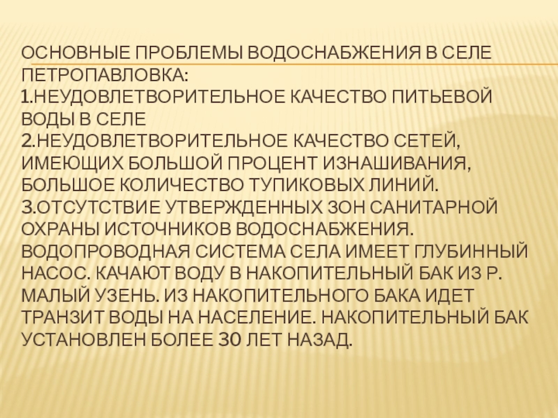 Слайд 19Основные проблемы водоснабжения в селе Петропавловка: