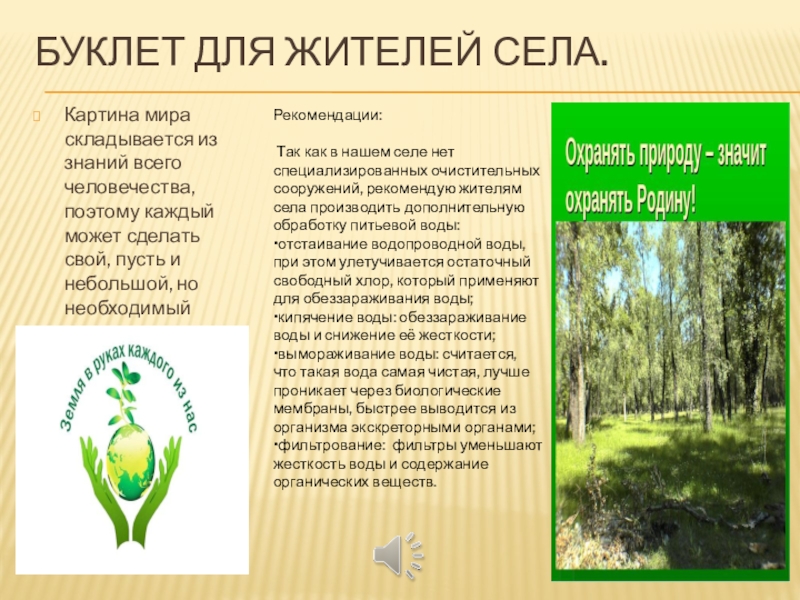 Так как в нашем селе нет специализированных очистительных сооружений, рекомендую жителям села производить дополнительную обработку питьевой воды: