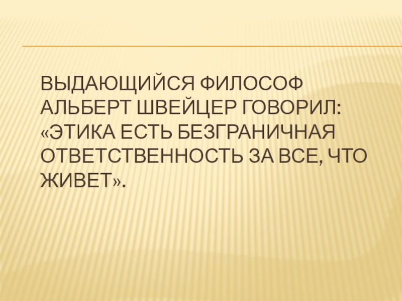 Слайд 8Выдающийся философ Альберт Швейцер говорил: «Этика есть безграничная ответственность за все,