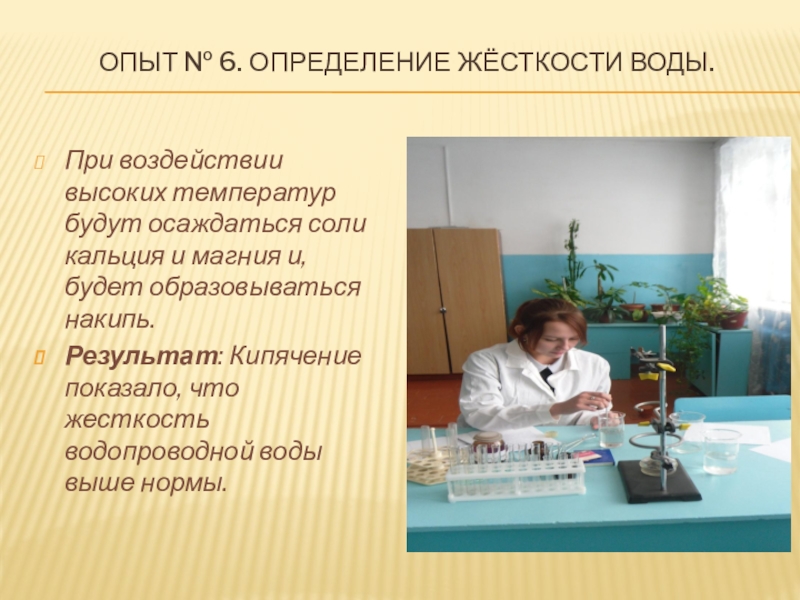 Слайд 27Опыт № 6. Определение жёсткости воды.