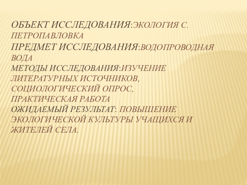 Исследование качества водопроводной воды с.Петропавловка Новоузенского района