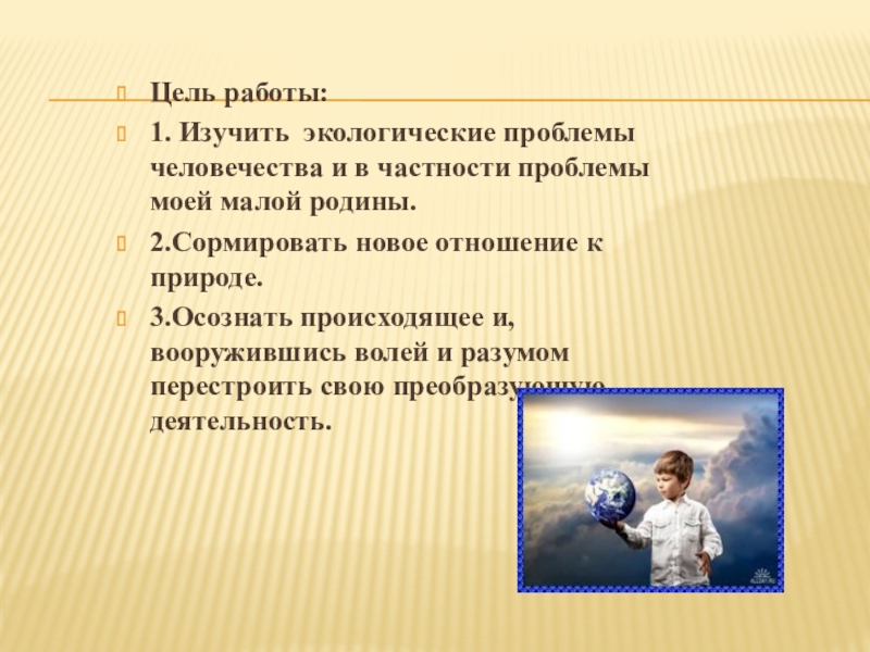 1. Изучить экологические проблемы человечества и в частности проблемы