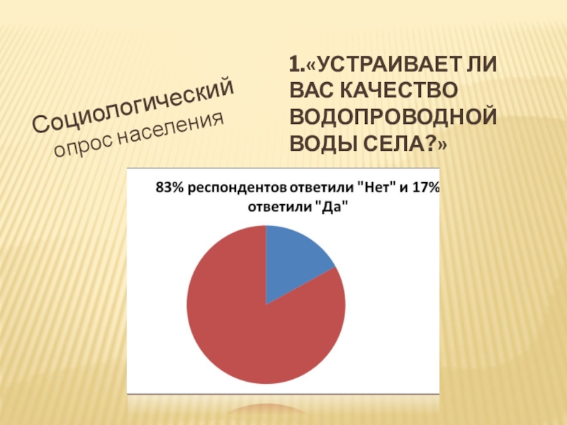 Слайд 171.«Устраивает ли вас качество водопроводной воды села?»