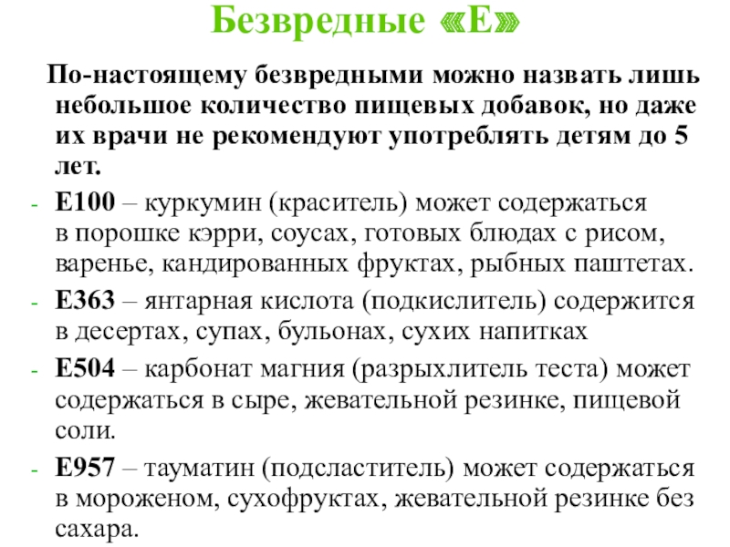 По-настоящему безвредными можно назвать лишь небольшое количество пищевых