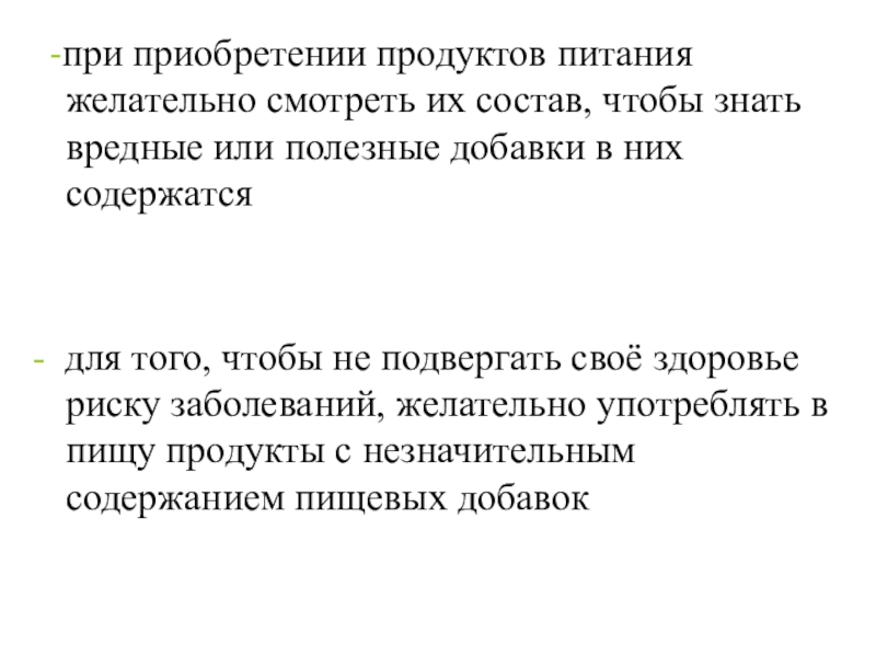 Слайд 45 -при приобретении продуктов питания желательно смотреть их состав, чтобы знать