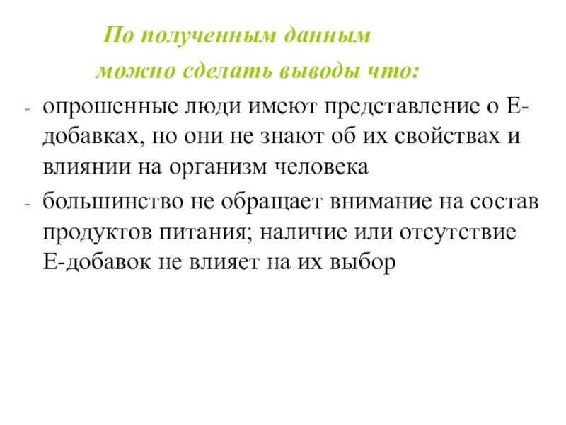 опрошенные люди имеют представление о Е-добавках, но они не знают об их свойствах и влиянии на организм человека
