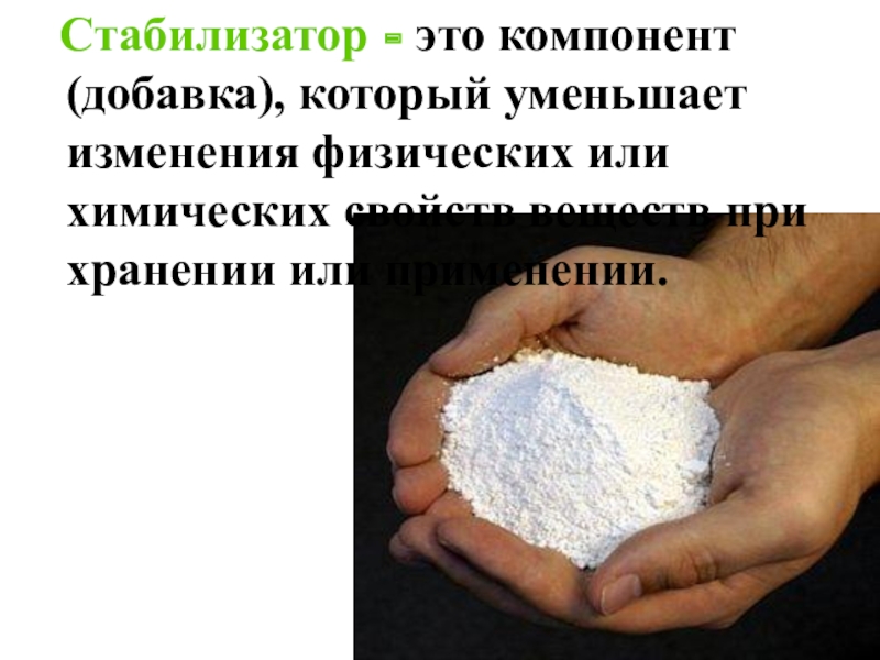 Слайд 18 Стабилизатор - это компонент (добавка), который уменьшает изменения физических