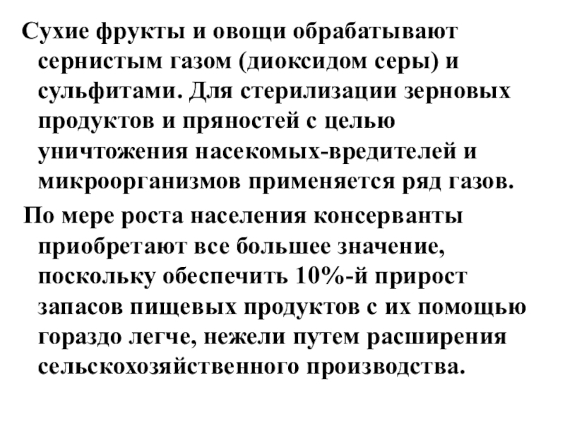Слайд 12 Сухие фрукты и овощи обрабатывают сернистым газом (диоксидом серы) и