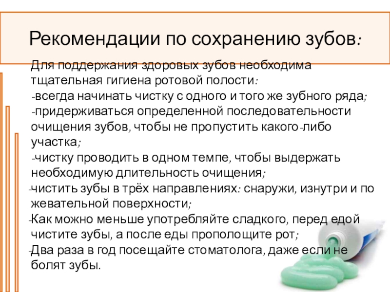 Оборудование: зубоврачебное кресло, кариес-маркер зубная щётка, паста.
