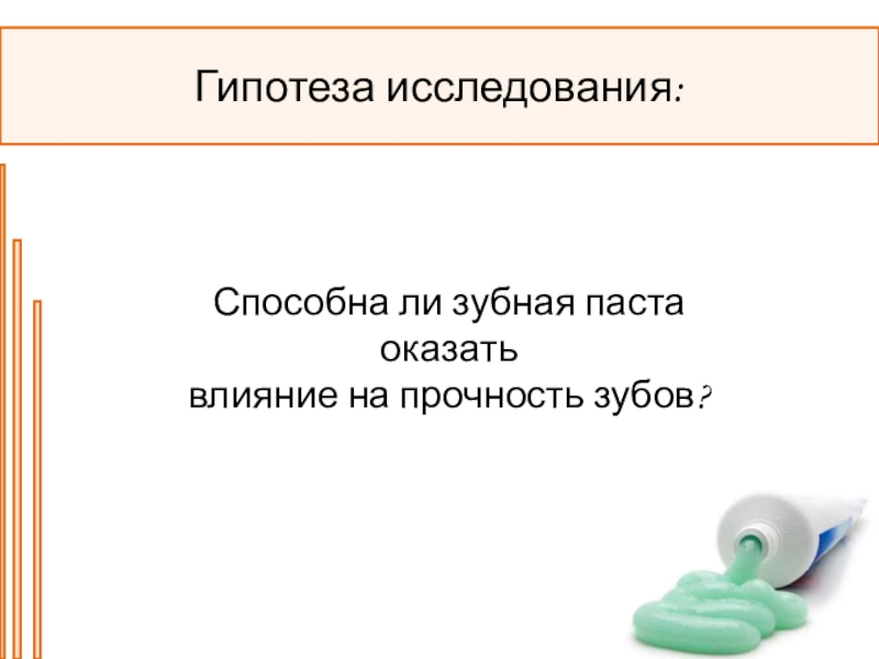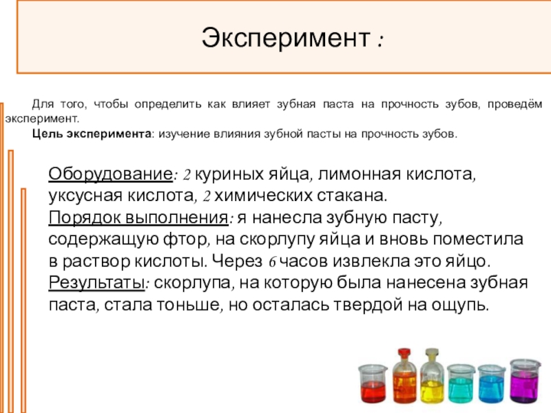 Для того, чтобы определить как влияет зубная паста на прочность зубов, проведём эксперимент.