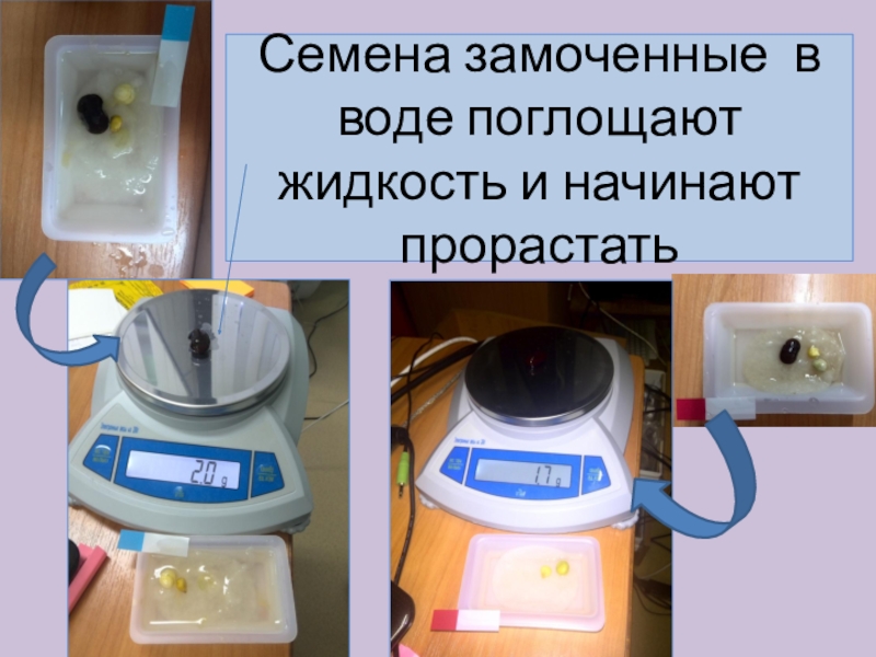 Слайд 18Семена замоченные в воде поглощают жидкость и начинают прорастать