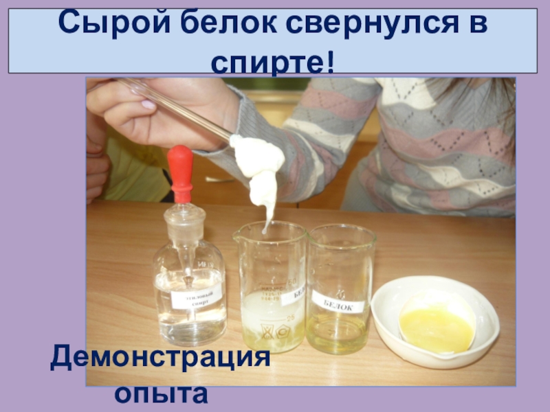 Сырой белок свернулся в спирте!Демонстрация опыта в 8 классе