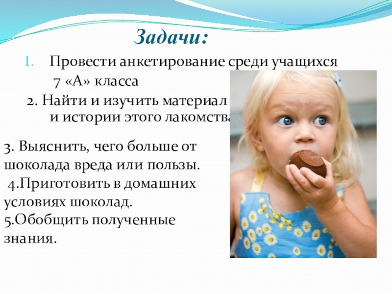 3. Выяснить, чего больше от шоколада вреда или пользы.