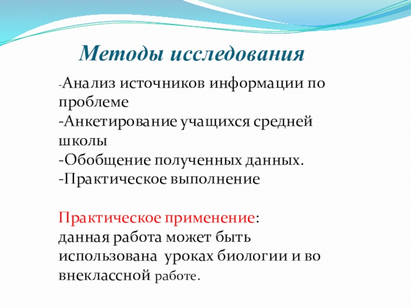 данная работа может быть использована уроках биологии и во внеклассной работе.