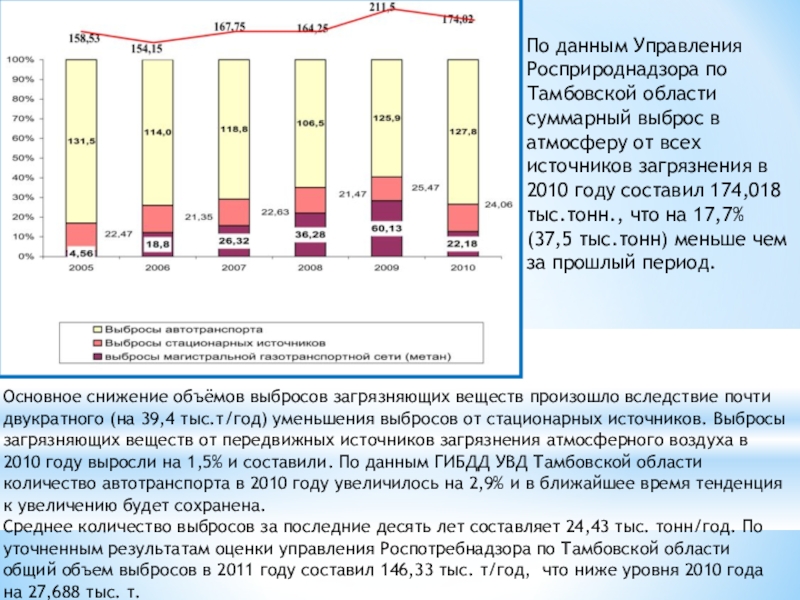 Слайд 8По данным Управления Росприроднадзора по Тамбовской области суммарный выброс в атмосферу