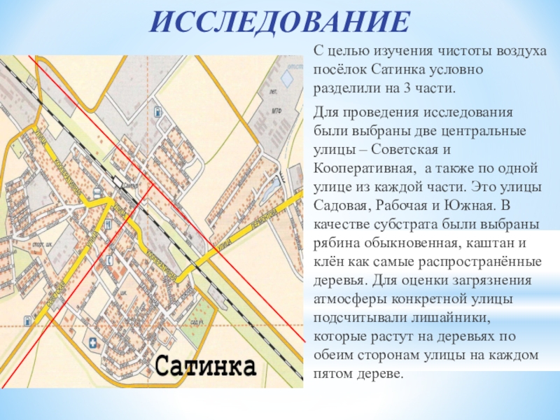 С целью изучения чистоты воздуха посёлок Сатинка условно разделили на 3