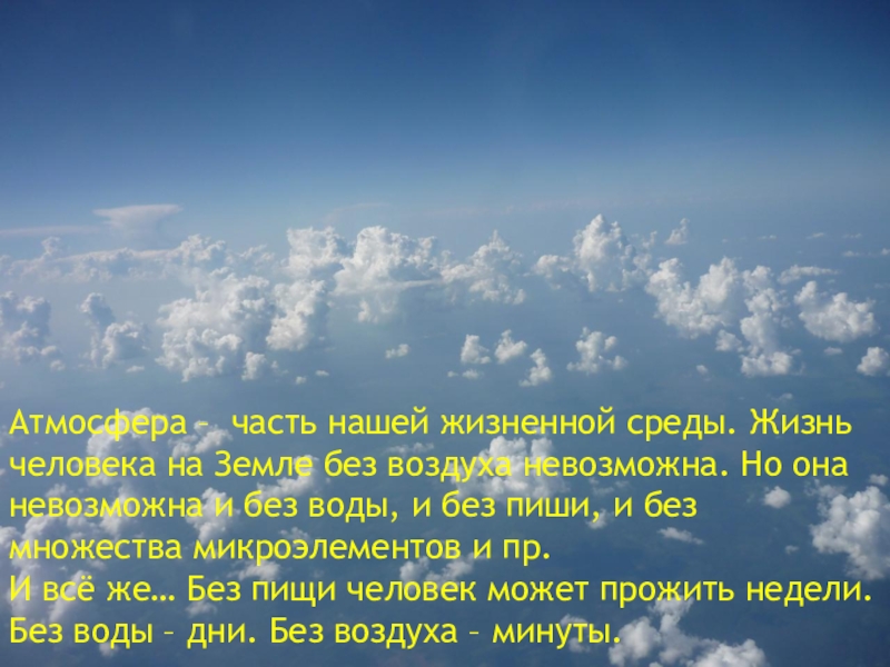 Атмосфера – часть нашей жизненной среды. Жизнь человека на Земле без
