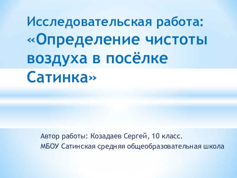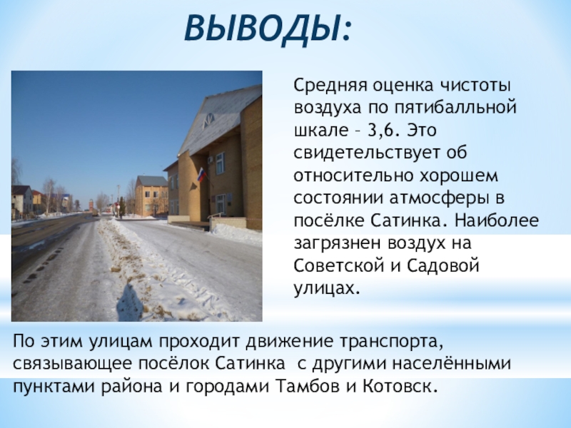 об относительно хорошем состоянии атмосферы в посёлке Сатинка. Наиболее загрязнен воздух на Советской и Садовой улицах.