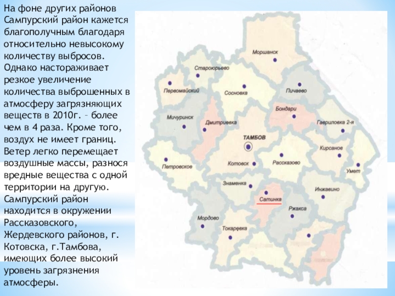 Слайд 10На фоне других районов Сампурский район кажется благополучным благодаря относительно невысокому